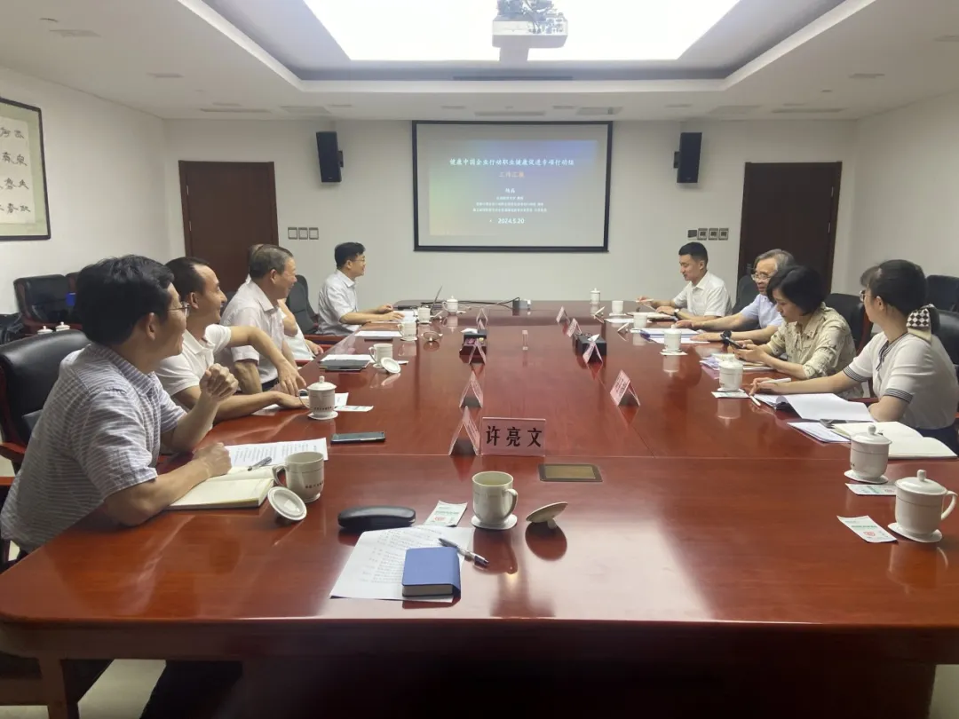 2024年5月20日,健康中国企业行动职业健康促进专项行动组(以下简称行动组)一行赴国家卫生健康委对接汇报。国家卫生健康委健康中国行动领导小组办公室常务副主任毛群安,国家卫生健康委规划发展与信息化司爱卫工作办处长王璐,四级调研员郭文杰,干部高亚娟,中国企业家联合会、健康中国企业行动协调推进办公室(以下简称推进办)秘书长周敬,行动组组长、杭州师范大学原副校长杨磊,行动组副组长、原杭州市职业病防治院院长曹承建,行动组副组长、深圳瑞安医疗服务有限公司董事长刘志胜,行动组副组长、浙江向上创业控股集团董事长裘利兴,行动组办公室主任许亮文参加会议。