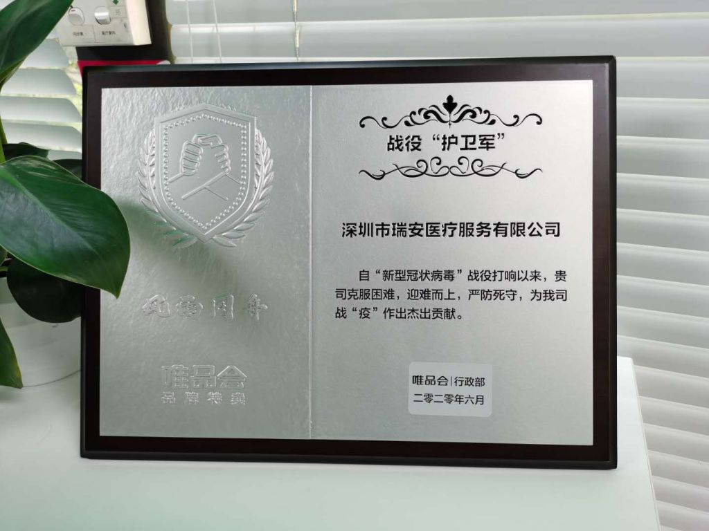唯品会授予瑞安医疗战疫“护卫军”荣誉