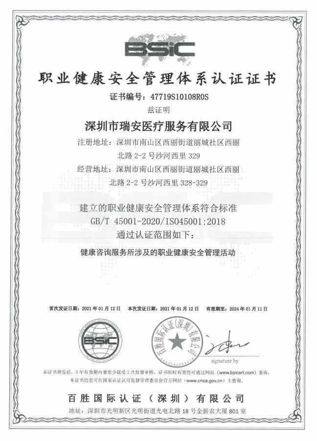 瑞安医疗在继成为全国高等学校教材--《职业健康服务与管理》的企业编委单位后,又顺利荣获了ISO三大标准的认证。在未来的日子里,瑞安医疗将持续运行以上三大ISO标准化体系,在职场健康事业的发展道路上不断精益求精,为广大企业客户持续提供符合高标准的职场健康产品与服务,致力于以标准化、规范化、科学化的职场健康综合服务体系,不断助力“健康企业建设”伟大战略性工作的稳健、加速发展!