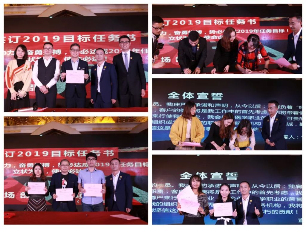 光荣使命,庄重承诺,签订2019目标任务书立状为证,使命必达,全体同事齐心协力、奋勇拼搏,势必达成2019年任务目标。