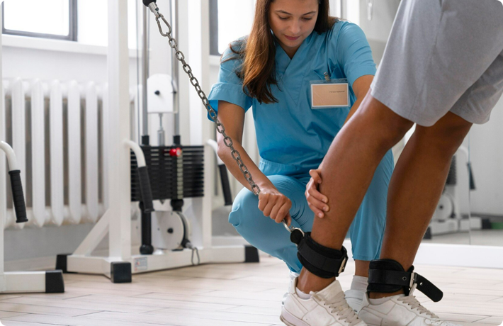 基于西医解剖学、以人体肌肉骨骼原理,使用悬吊设备、冲击波治疗仪等专用康复器材,实现物理治疗。