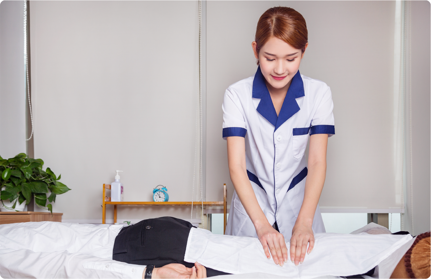 基于中医理论,以人体经络穴位原理,提供推拿、艾灸、拔罐、刮痧等项目。借助如中频机、疼痛治疗仪等中医理疗设备,进行专业康复治疗。
